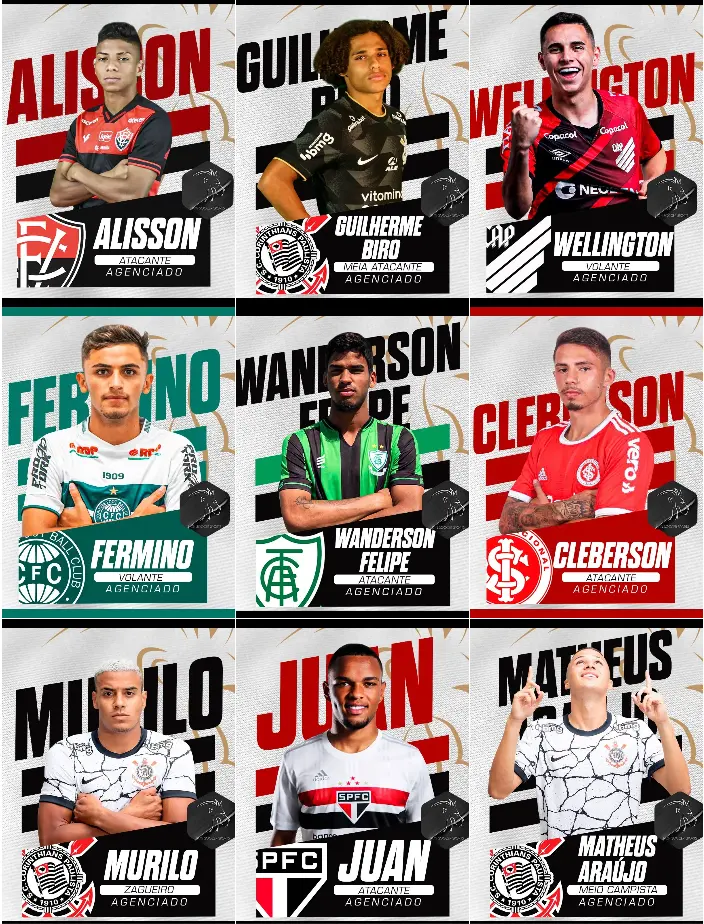- Gustavo Scarpa (meio-campista, ligado à FFP Agency, ex-Palmeiras, Nottingham Forest, Olympiacos e, hoje, do Atlético Mineiro)